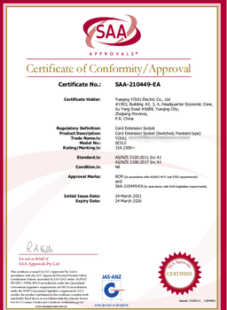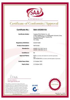 YOUU Estándar australiano Certificación SAA Interruptores eléctricos Interruptor de luz de pared Enchufe único Delgado